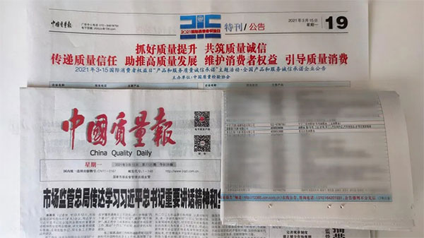 《中國質量報》、《中國消費者報》、中國經濟網、中國質量網、中國消費網等多家權威媒體均予以集中展示和公告。不僅如此,公司還獲得了“全國質量誠信先進企業(yè)”的榮譽稱號,這是需要經過中檢協(xié)長達三年的全方位監(jiān)督檢查合格才能獲得的榮譽稱號,其含金量可見一斑!