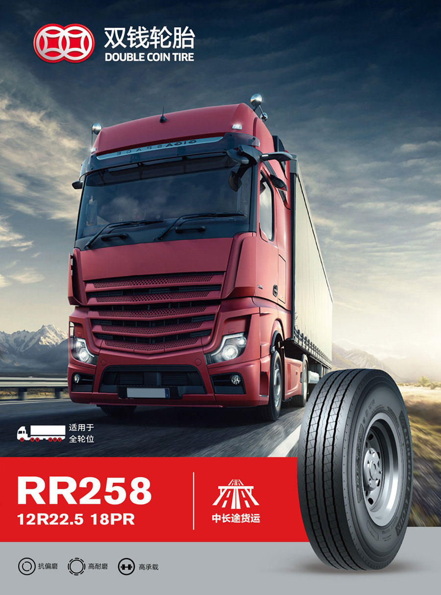 雙錢輪胎主要產品有全鋼絲子午線載重汽車輪胎、全鋼絲子午線輕型載重汽車輪胎、全鋼絲子午線工程車輛輪胎、全鋼絲子午線工業(yè)車輛輪胎、農業(yè)子午線輪胎、半鋼絲子午線乘用輪胎、斜交載重汽車輪胎、斜交輕型載重汽車輪胎、斜交工程工業(yè)輪胎等。雙錢輪胎享有自營進出口權,產品銷往國外一百多個國家和地區(qū),國內市場覆蓋各省、市和自治區(qū),同時為中集集團、鄭州宇通、廈門金龍、沃爾沃等30余家汽車制造廠配套,并進入歐美原配胎市場,與SCHMITZ CARGO、Caterpillar、Autocar、UTILITY TRAILER等著名汽車廠商的卡車、校車、工程機械車輛配套,而且還進入了以J.B.HUNT等著名物流公司為代表的歐美主流市場。