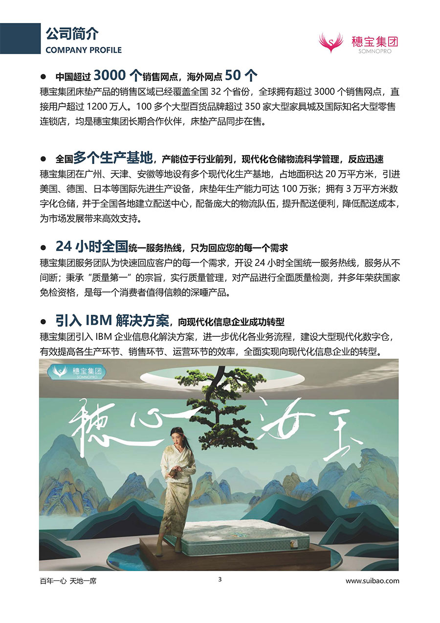 至今,穗寶集團(tuán)旗下?lián)碛卸鄠€來自世界各地的優(yōu)質(zhì)品牌,包括:穗寶、詩貝艾爾、百納璐詩、睡客小鎮(zhèn)、Mr.Z早先生等;此外,穗寶集團(tuán)從世界各地甄選適合不同消費(fèi)者的優(yōu)質(zhì)睡眠產(chǎn)品,定制屬于您的睡眠空間。如今,穗寶集團(tuán)形成以研發(fā)、生產(chǎn)和銷售床墊為主營業(yè)務(wù),涉及家具、家居裝飾、酒店配套等多項(xiàng)業(yè)務(wù)的企業(yè)群體。