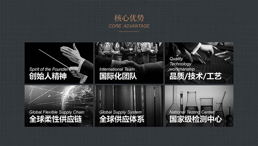 大楊集團堅持自主創(chuàng)新,聘請意大利、日本、美國等資深專家,組建具備世界領先水平的技術研發(fā)團隊,尤其是自主研發(fā)的全毛芯、全手縫等多項核心技術,確立了企業(yè)在世界服裝行業(yè)的領先地位。目前,大楊集團擁有6家高新技術企業(yè),1家瞪羚企業(yè)、2家專精特新企業(yè)和1個國家級工業(yè)設計中心,1個省級企業(yè)技術中心,1個市級科技創(chuàng)新服務機構,是中國服裝產(chǎn)品創(chuàng)新基地、遼寧省標準化示范基地。旗下遼寧科諾檢驗檢測中心,已躋身國家中小企業(yè)公共服務示范平臺,獲得CNAS國家實驗室認可、CMA資質(zhì)認定,是全國紡織品標準化技術委員會“紡織標準驗證實驗室”,擁有500余項紡織類檢測標準能力,已累計主持或參與制定國家標準,以及制定各類企業(yè)標準30多項。