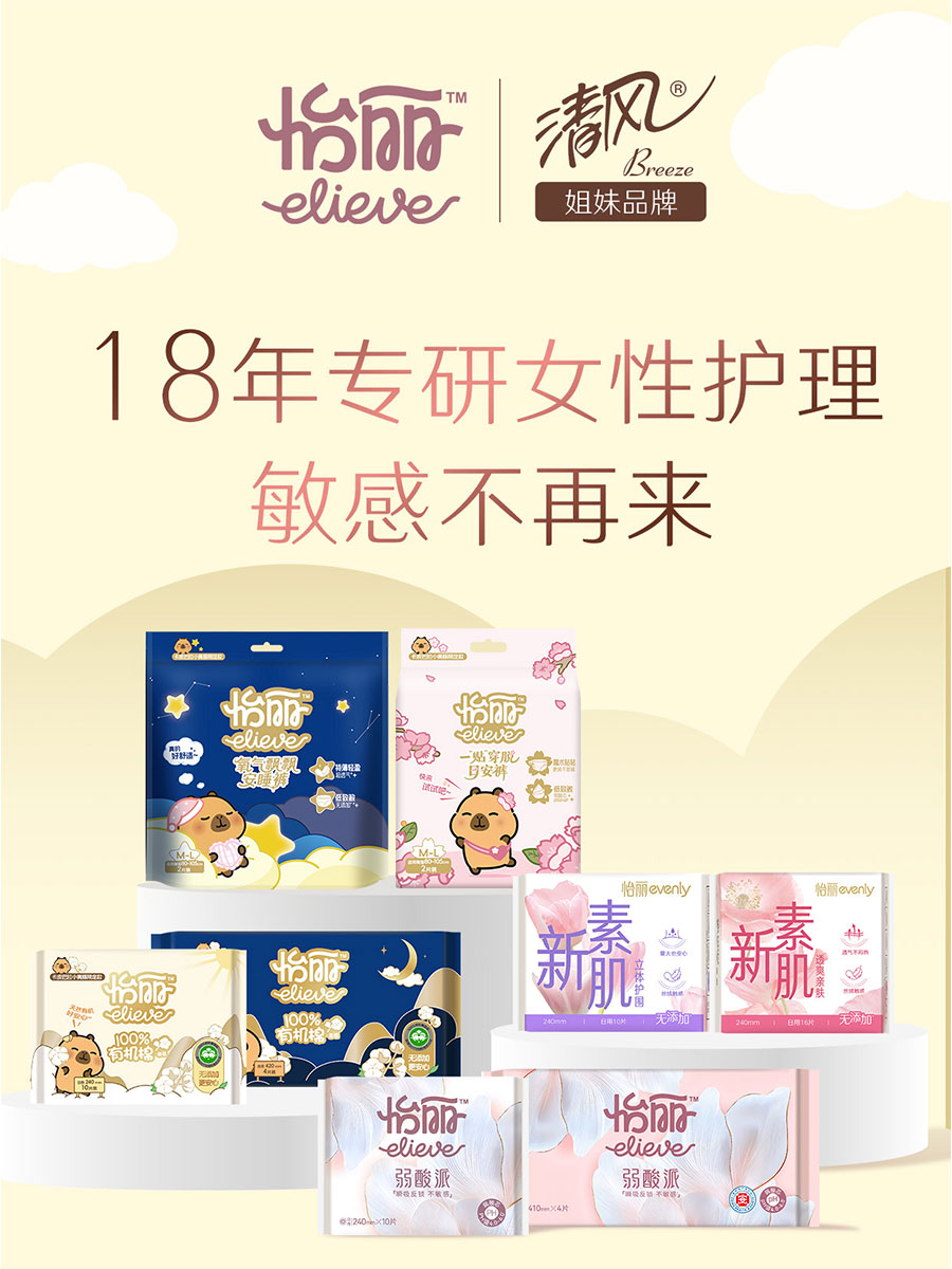 “鉑麗雅”品牌“借助自然的力量”為女性帶來美好的個人美妝護理體驗。“真真”專業(yè)舒適型成人護理品牌,主打?qū)I(yè)、舒適、極致性價比。“怡麗”以膚感定義舒適,專注衛(wèi)生巾膚感科技,探索無感舒適體驗。