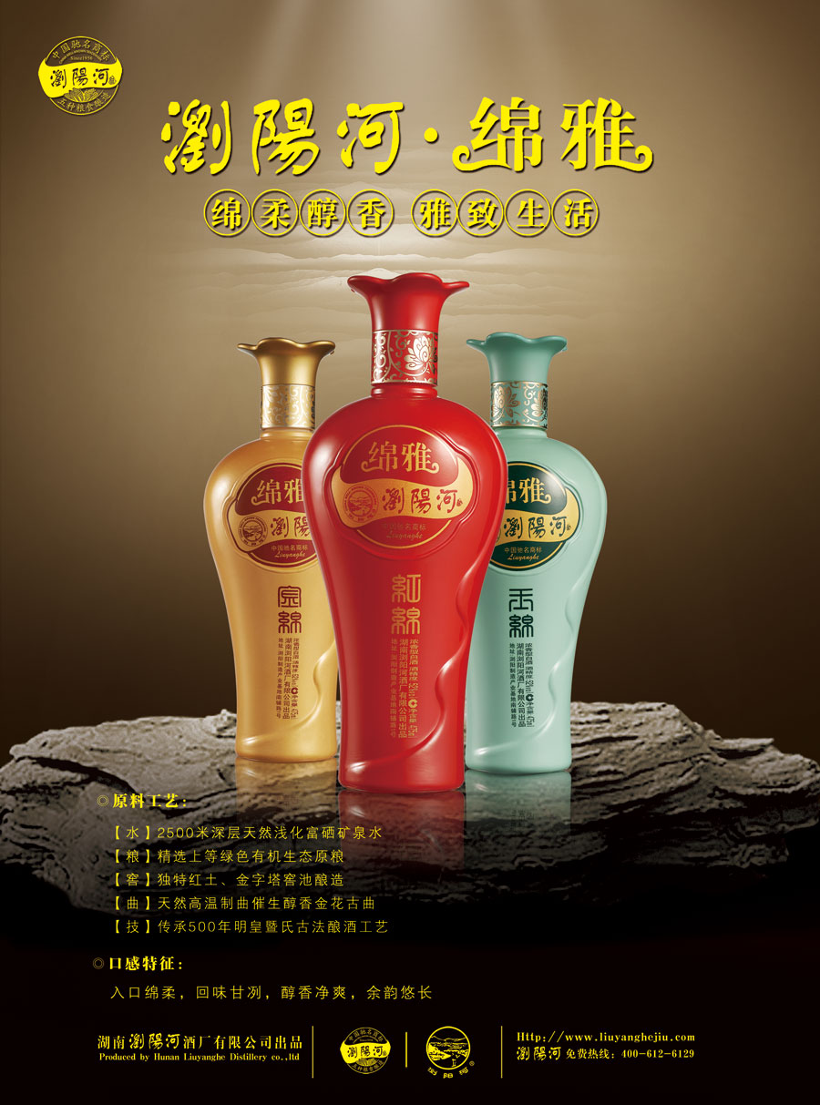 主要產(chǎn)品:瀏陽(yáng)河綿雅系列、瀏陽(yáng)河生態(tài)年份系列等瀏陽(yáng)河酒系列產(chǎn)品