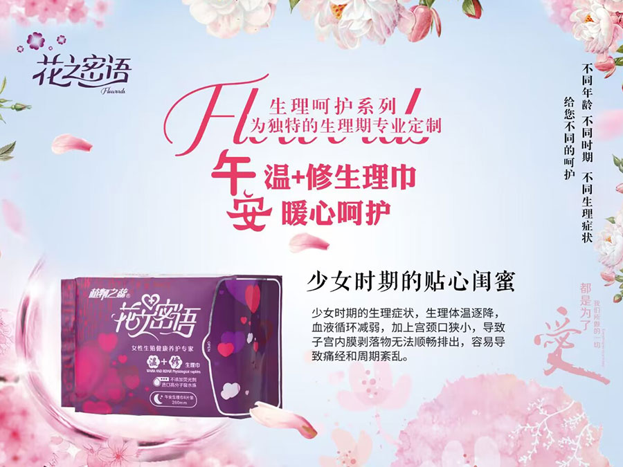 主要產(chǎn)品:花之密語衛(wèi)生巾;花之密語“締美”理療艙;花之密語女性私密養(yǎng)護品牌舒茵妙